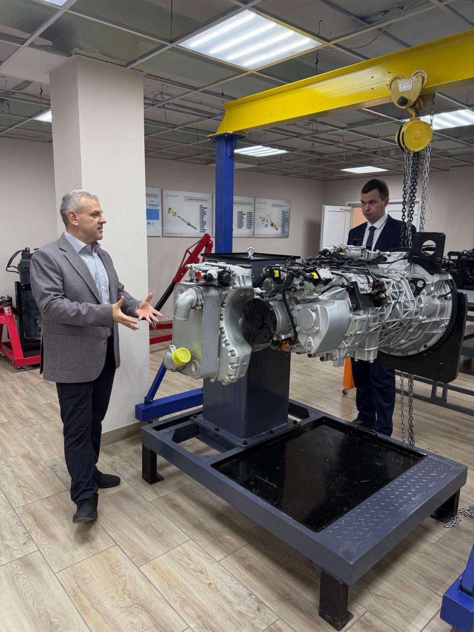 В ходе встречи представители ЦКМ «GROSS» подробно представили гостю технические возможности центра: учебные классы, оборудованные учебными стендами по электрической части и стендами для ДВС, КПП (ZF, S-AMT, HW), ведущих осей и редукторов (различных модификаций), а также всем необходимым инструментом для полноценной разборки/сборки узлов и агрегатов автомобилей , и специально оборудованную площадку для практических занятий с учебными автомобилями.